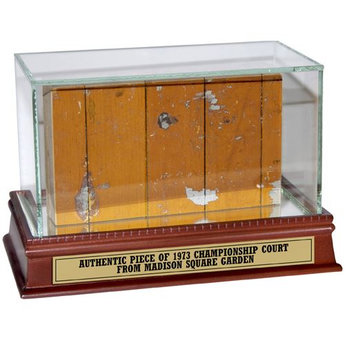 Authentic Piece of 1973 MSG Court w/ Glass Display Case & Engraved Gold plate
