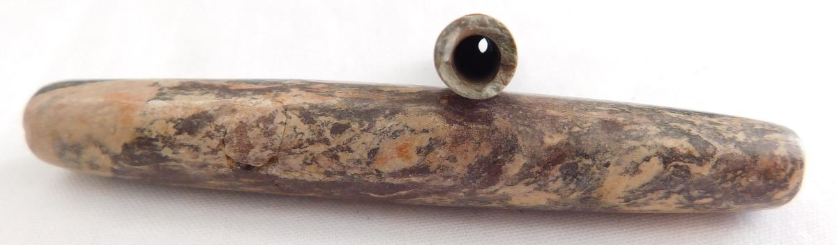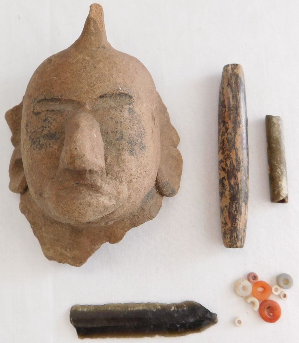 Authentic Pre-Columbian Artifact Collection. Consisting of jade, obsidian, clay, shell and stone, these items are from Central Mexico and measure from 3 1/2 x 3 inches to 1/8". The highlight of this collection is a 3 1/2" jade tube bead. Condition: All items are as found, see images. Shipping: $19.50.