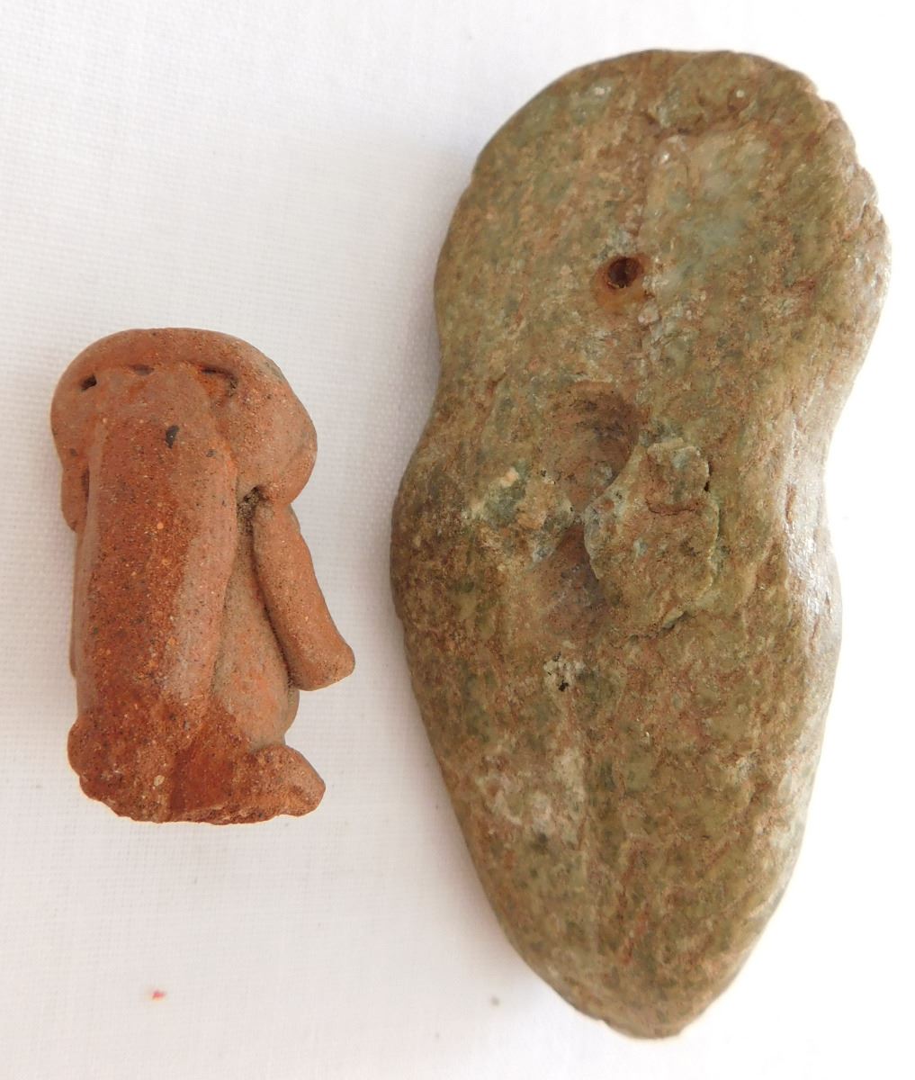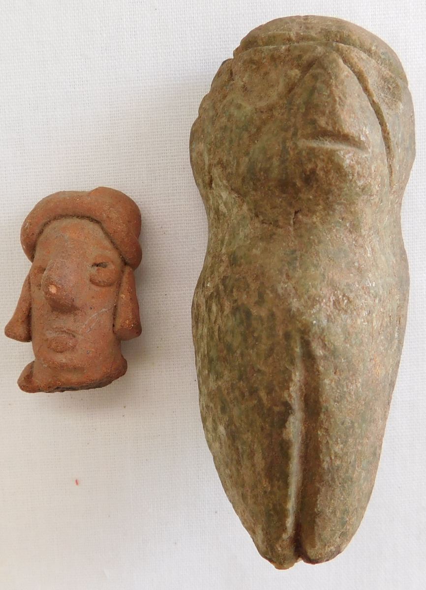Authentic Pre-Columbian Artifact Collection. Consisting of jade, obsidian, clay, shell and stone, these items are from Central Mexico and largest item measures 3 x 1 1/2 inches. The highlight of this collection is a mezcala stone figure. Condition: All items are as found, see images. Shipping: $20.50.
