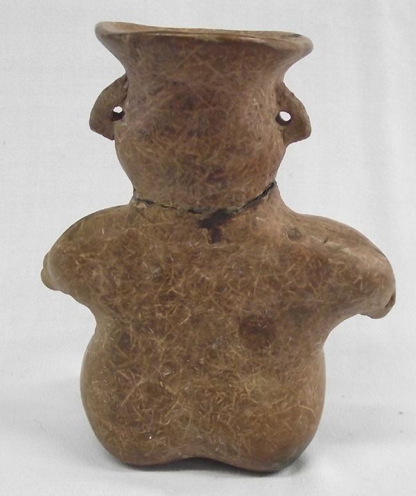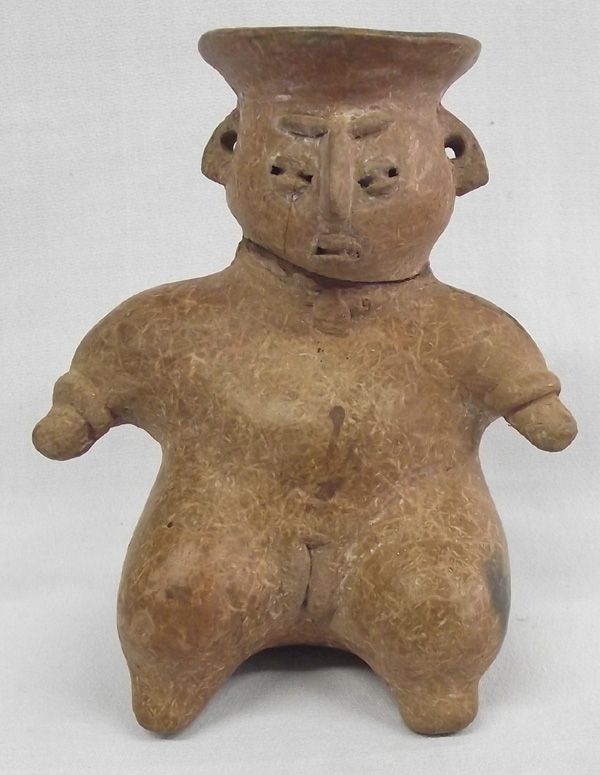 Authentic Precolumbian Female Idol Pottery Effigy, anatomically correct. Head has been glued. Measures approx. 6''H x 5.25''L x 3''W.