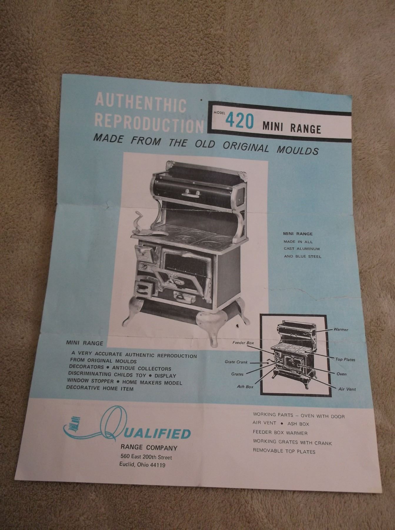 Authentic Reproduction Made From Original Molds Model 420 Mini Cook Stove- Manual