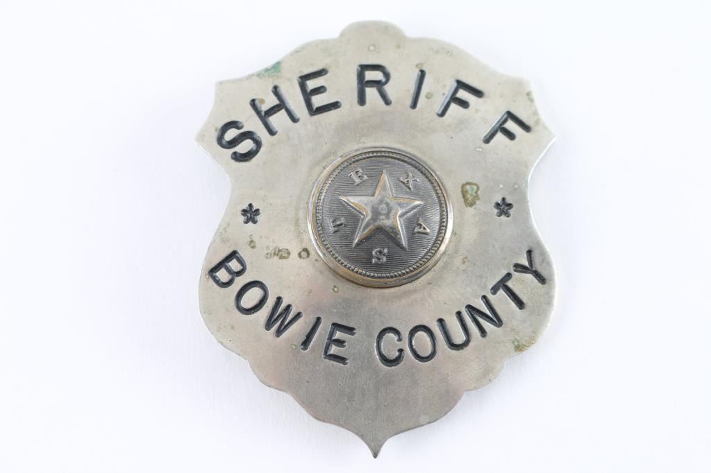 Original Bowie County Sheriff's badge, circa 1870 with an original 1836-45 Republic of Texas Uniform Button in the center.