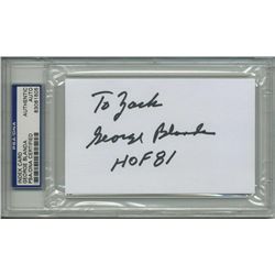 This is an index card signed by Oakland Raiders Hall of Fame Member George Blanda. This item comes in a Tamper-Proof Slab with a PSA/DNA Certificate o