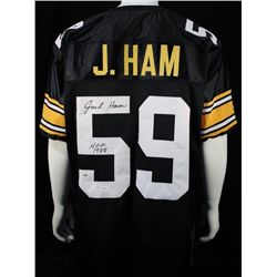 This is a Pittsburgh Steelers custom jersey signed by Hall of Fame linebacker Jack Ham. The jersey comes with a Certificate of Authenticity from PSA/D