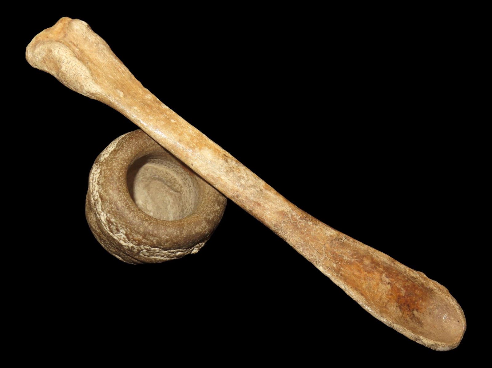 Authentic Stone Bowl with Bone Spoon found in a rock shelter in Lee county Iowa along the Des Moines