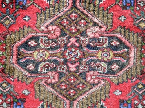 Authentic Superb Persian Tafresh Runner 8.8 X 2.8 Feet. Made of fine quality lamb's wool pile on cotton foundation, all natural vegetable dye, incorporating three central medallians two in white background and the other one is multicolored. This rug has a hybrid geometric and floral pattern on a rich red background and framed beautifully by an intricately done geometric border. Hand woven in Sarouk, Iran.