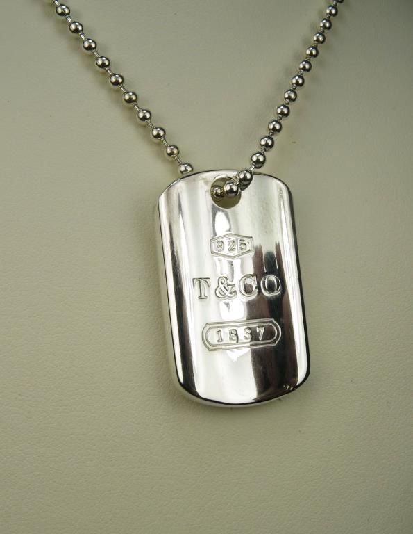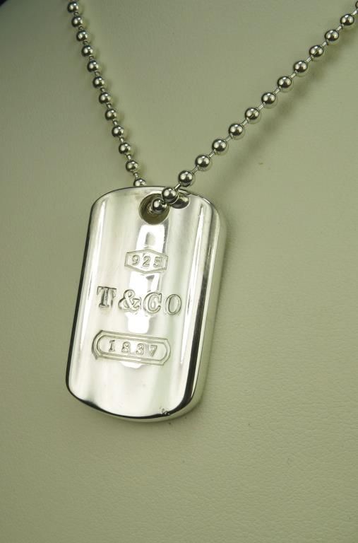 Authentic ‘TIFFANY & CO Established 1837’ Sterling Silver I.D. Tag Necklace with 24” Beaded Chain. This design is no longer available in the Tiffany line - will be a sought after item with Tiffany Collectors. Estimate $300-$350