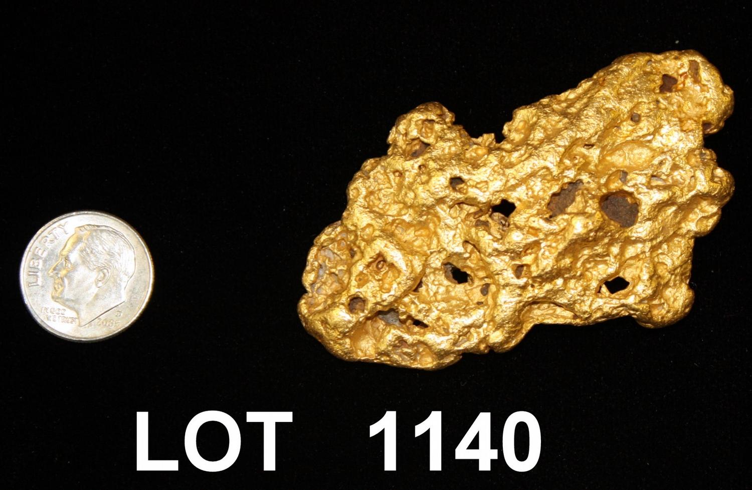 Authentic and natural gold nugget, 104.4 grams (3.683 oz). Est: $4,000 - $8,000