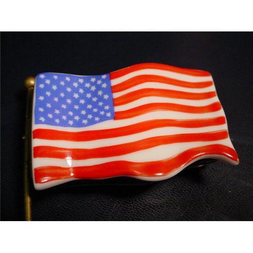 Here is a "American flag" hand-painted Porcelain box. Excellent condition, hinges and clasps work fine.
