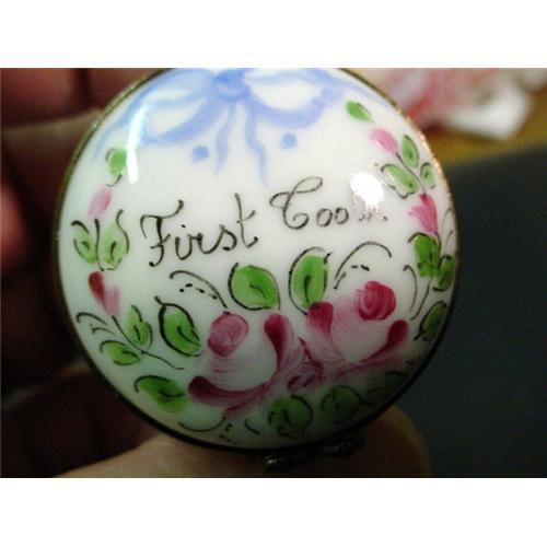 Here is a SUPERB "First tooth" hand-painted Porcelain box. Excellent condition, hinges and clasps work fine.
