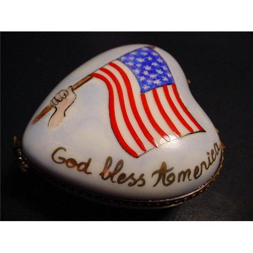 Here is a "Heart God bless America" hand-painted Porcelain box. Excellent condition, hinges and clasps work fine.