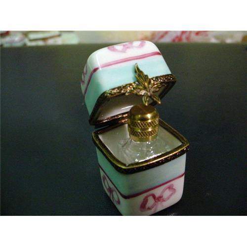 Here is a SUPERB hand-painted Porcelain box with its bottle. Excellent condition, hinges and clasps work fine.