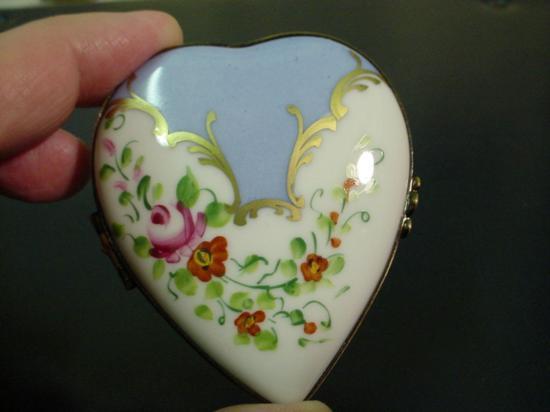 Authentic hand-painted Limoges box signed by artist from a famous studio! This box was created by an artist, graduate of one of the most prestigious French Fine Porcelain schools. Here is a SUPERB "Heart" hand-painted Porcelain box. Excellent condition, hinges and clasps work fine. This Limoges box is marked "Peint main" (Hand-painted) Limoges France, signed: A-A + #50 for the 50th from a very limited production...as shown in picture. It is in mint condition (No chips, cracks or repairs). Would be a great value to any Limoges box collection. For the shipping...don't worry, we ship from Texas (not from France)! h-0.75/ w-3/ d-2.5