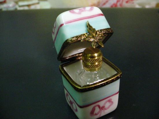 Authentic hand-painted Limoges box signed by artist from a famous studio! This box was created by an artist, graduate of one of the most prestigious French Fine Porcelain schools. Here is a SUPERB hand-painted Porcelain box with its bottle. Excellent condition, hinges and clasps work fine. This Limoges box is marked "Peint main" (Hand-painted) Limoges France, signed: M-A + #46 for the 46th from a very limited edition, as shown in picture. It is in mint condition (No chips, cracks or repairs). Would be a great value to any Limoges box collection. For the shipping...don't worry, we ship from Texas (not from France)! 1.75x1x1