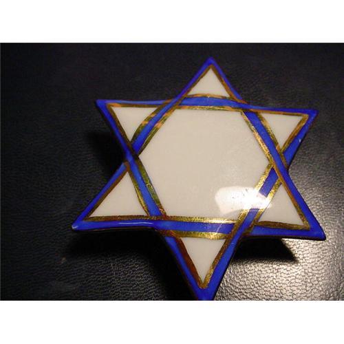 Here is a "Star of David" hand-painted Porcelain box. Excellent condition, hinges and clasps work fine.