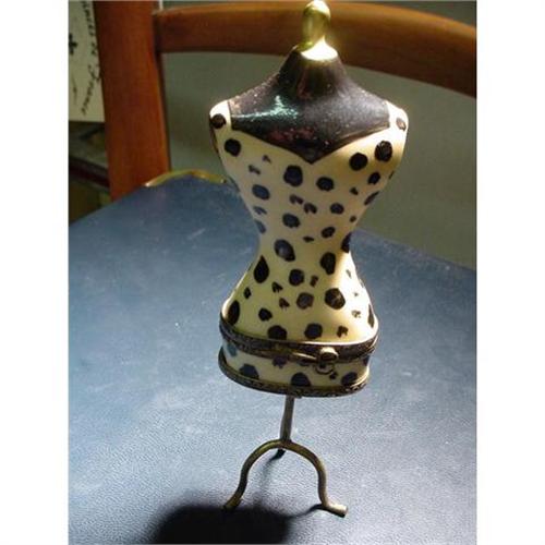 Here is a "Dress designer chest" hand-painted Porcelain box. Excellent condition, hinges and clasps work fine.