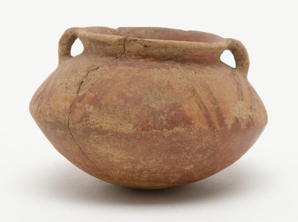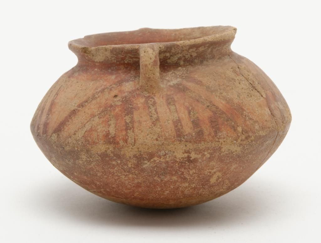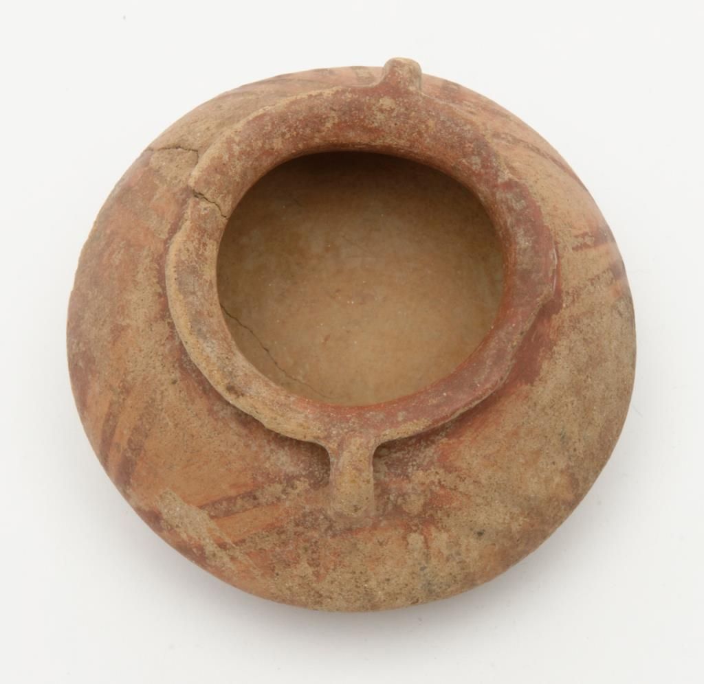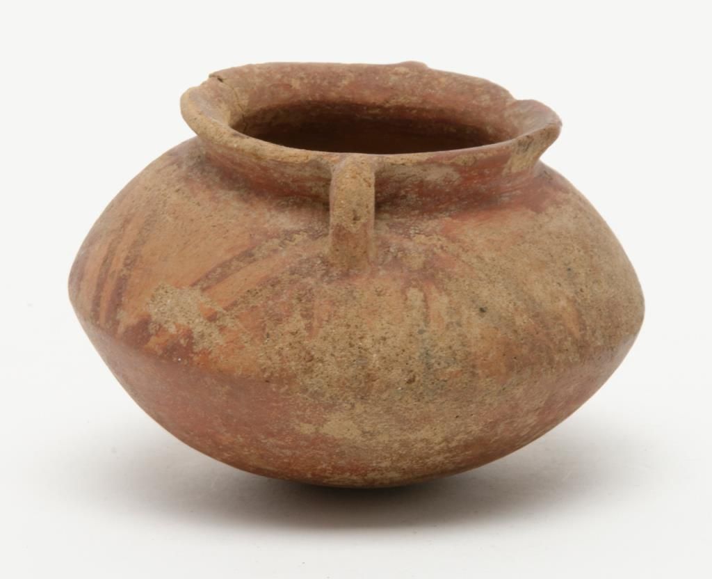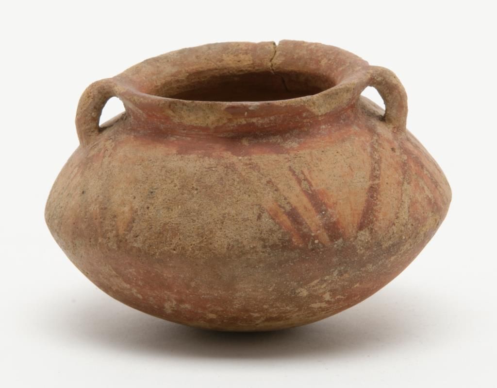 Authentic pre-Columbian pot with some original paint. Cracks and damage. Measures approximately 2” in height. Est.: $75-$150