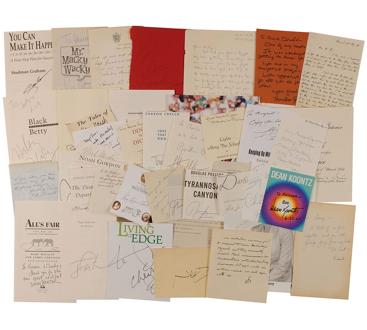 Collection of over 100 items, including signatures, book pages, FDCs, letters, and photos signed by authors and illustrators from all fields. Signers include: Oliver Wendell Holmes, Sr., Eugene Field, Lew Wallace, William Peter Blatty, Vincent Bugliosi, N