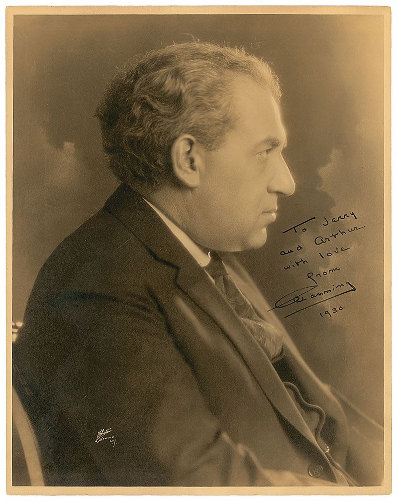 Channing Pollock: Vintage matte-finish 11 x 14 studio portrait of Pollock in profile, signed and inscribed in fountain pen, “To Jerry and Arthur, with love, from Channing, 1930.” In fine condition.