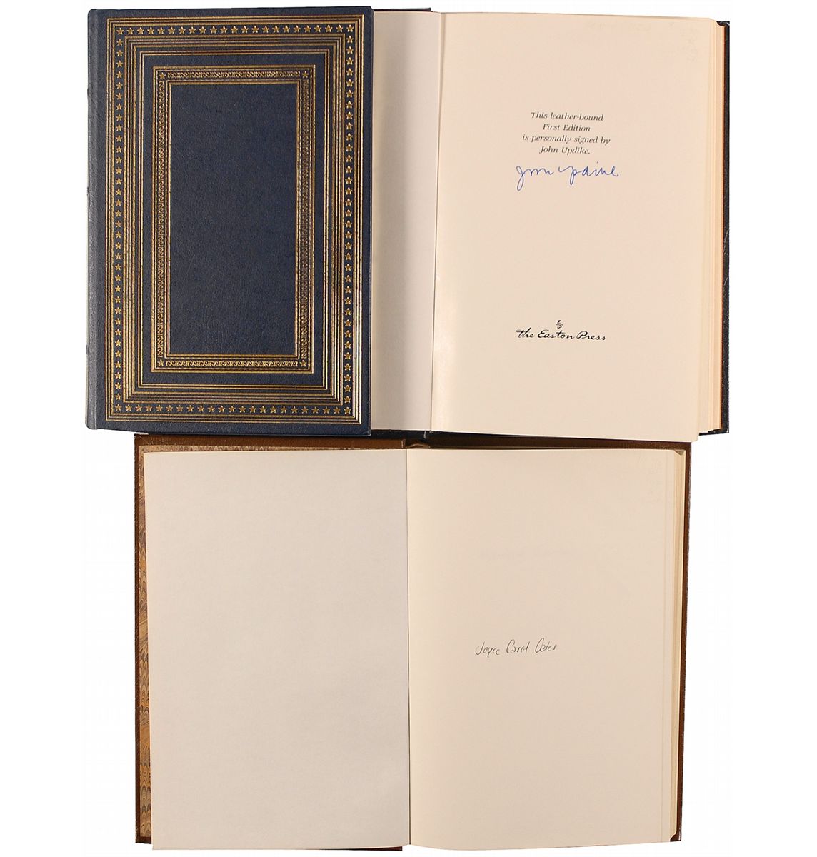 Three limited edition Easton Press first edition hardcover books, each signed on an opening page by the respective author. Signers are: John Updike (Self-Consciousness); Joyce Carol Oates (Mysteries of Winterthurn); and Gore Vidal (Lincoln). In fine condition.