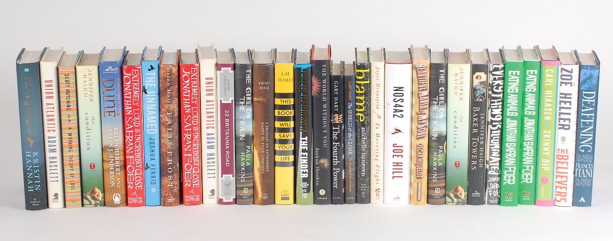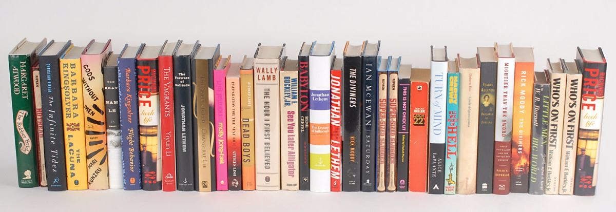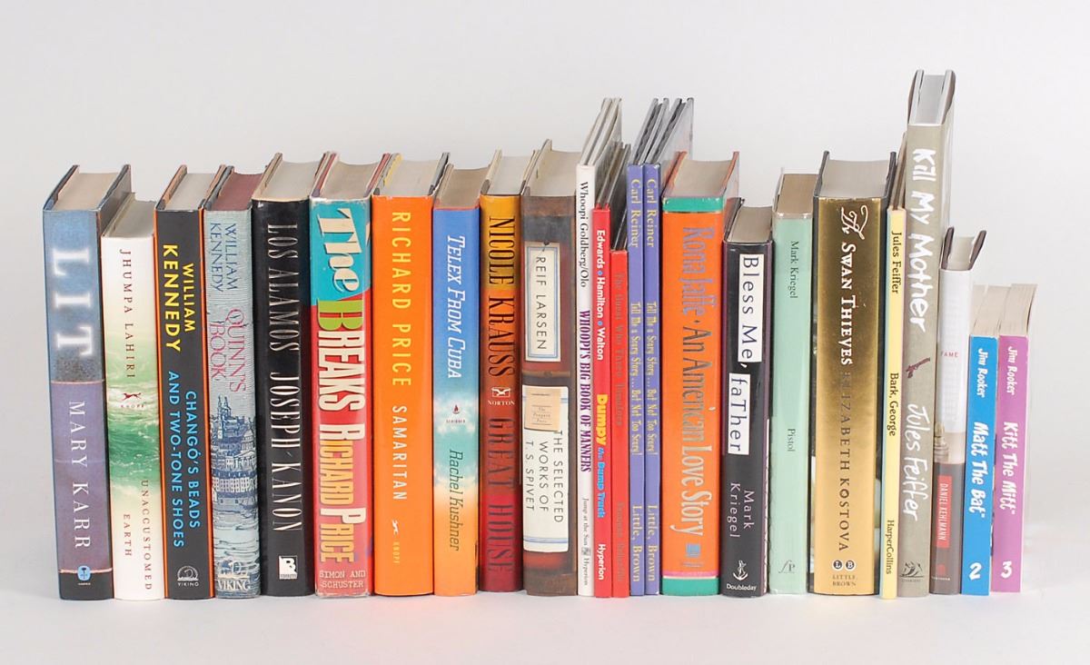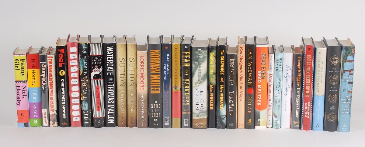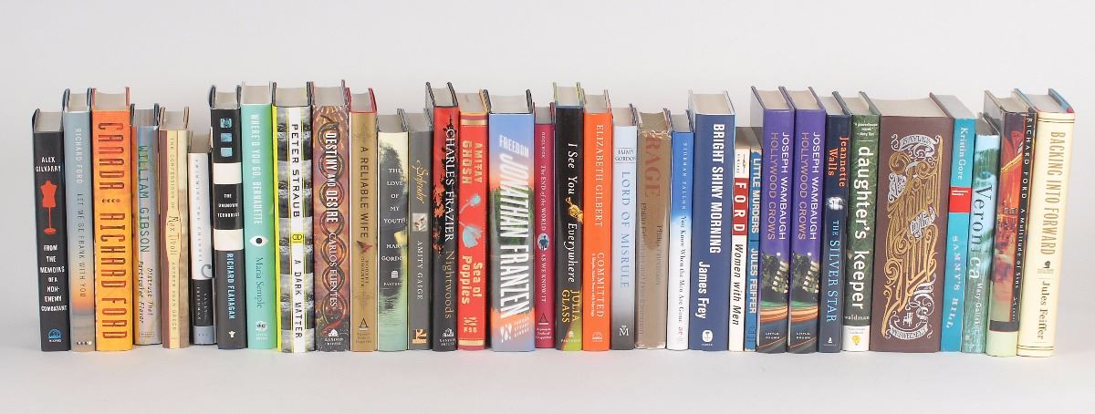 Complete list of signers: Isabel Allende; Margaret Atwood; Kay Boyle; William F. Buckley, Jr. (3); W. R. Burnett; Harry Crews; Umberto Eco; Siobhan Fallon; Jules Feiffer (4); Joshua Ferris; Richard Flanagan; Jonathan Safran Foer (5); Richard Ford (4); Jonathan Franzen; Charles Frazier; James Frey; Philip Friedman; Sally Friedman; Carlos Fuentes; Amity Gaige; Mary Gaitskill; Amitav Ghosh; William Gibson; Elizabeth Gilbert; Alex Gilvarry; Julia Glass; Robert Goolrick (2); Jaimy Gordon; Mary Gordon; Kristin Gore; Andrew Sean Greer; Khanh Ha; Gene Hackman and Daniel Lenihan; Jennifer Haigh (3); Brian Hall (2); Mohsin Hamid; Kristin Hannah; Joseph Hansen (2); Colin Harrison; Gary Hart (2); Adam Haslett (2); Paula Hawkins (2); Joseph Heller; Zoe Heller; Joshua Henkin; Brian Herbert and Kevin Anderson; Carl Hiaasen; George V. Higgins; Oscar Hijuelos; Joe Hill; Joyce Hinnefeld; Amanda Hodgkinson; A.M. Homes; Nick Hornby (2); Michelle Huneven; cott Hutchins; Frances Itani; Rona Jaffe; Molly Jong-Fast; Joseph Kanon; Mary Karr; Daniel Kehlmann; William Kennedy (2); Christian Kiefer; Barbara Kingsolver (2); Elizabeth Kostova; Nicole Krauss; Mark Kriegel (2); Hari Kunzru; Rachel Kushner; Jhumpa Lahiri; Wally Lamb; Richard Lange; Alice LaPlante; Reif Larsen; Nam Le; Chang-Rae Lee; Jonathan Lethem (3); Yiyun Li; Atticus Lish; Norman Mailer; Thomas Mallon (2); Peter Manseau; Becky Masterman (2); Ayana Mathis; Ian McEwan (2); Jay McInerney; Rod McKuen; Brad Meltzer; Jonathan Miles; David Mitchell (2); J. R. Moehringer (2); Rick Moody (2); Christopher Moore; Lorrie Moore; Erin Morgenstern; Laura Moriarty; Dow Mossman; Eddie Muller; Richard Price (4); David Reynolds; Cal Ripken, Jr. (3); John Sayles; Maria Semple; Peter Straub; Ayelet Waldman; Jeanette Walls; Joseph Wambaugh (2). Also includes seven children’s books by Jim Rooker (2), Julie Andrews, Cal Fussman, Carl Reiner (2), and Whoopi Goldberg.