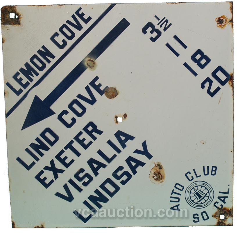 Auto Club Of Southern California Porcelain Highway Sign, Lemon Cove - diamond shaped 25" x 25".