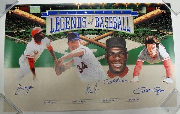 Auto LEGENDS OF BASEBALL POSTER, Joe Morgan, Nolan Ryan, Bob Gibson, Pete Rose