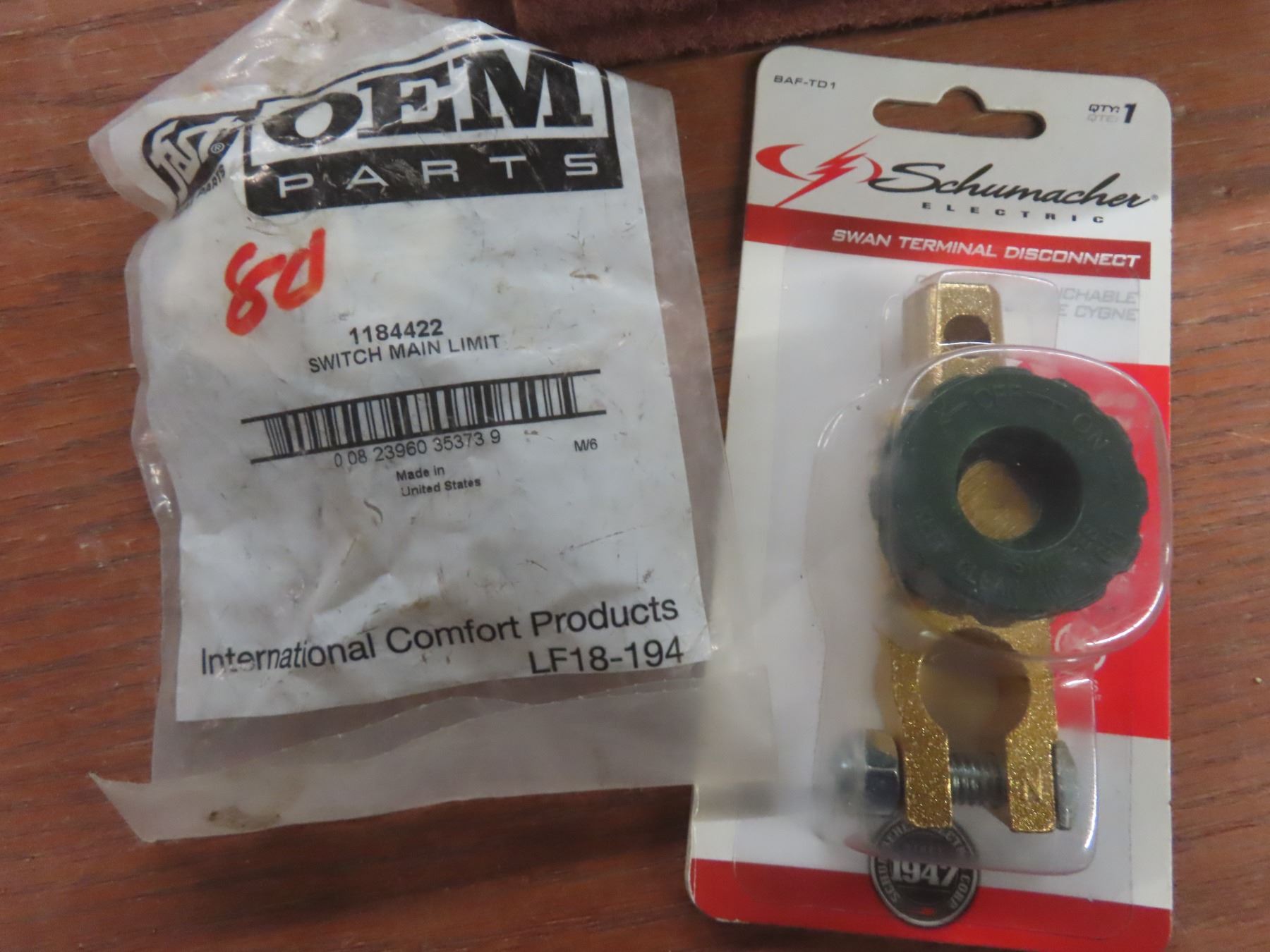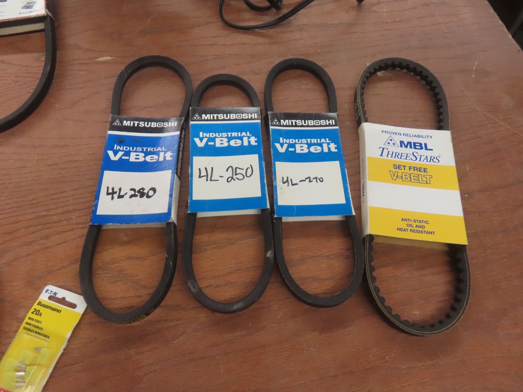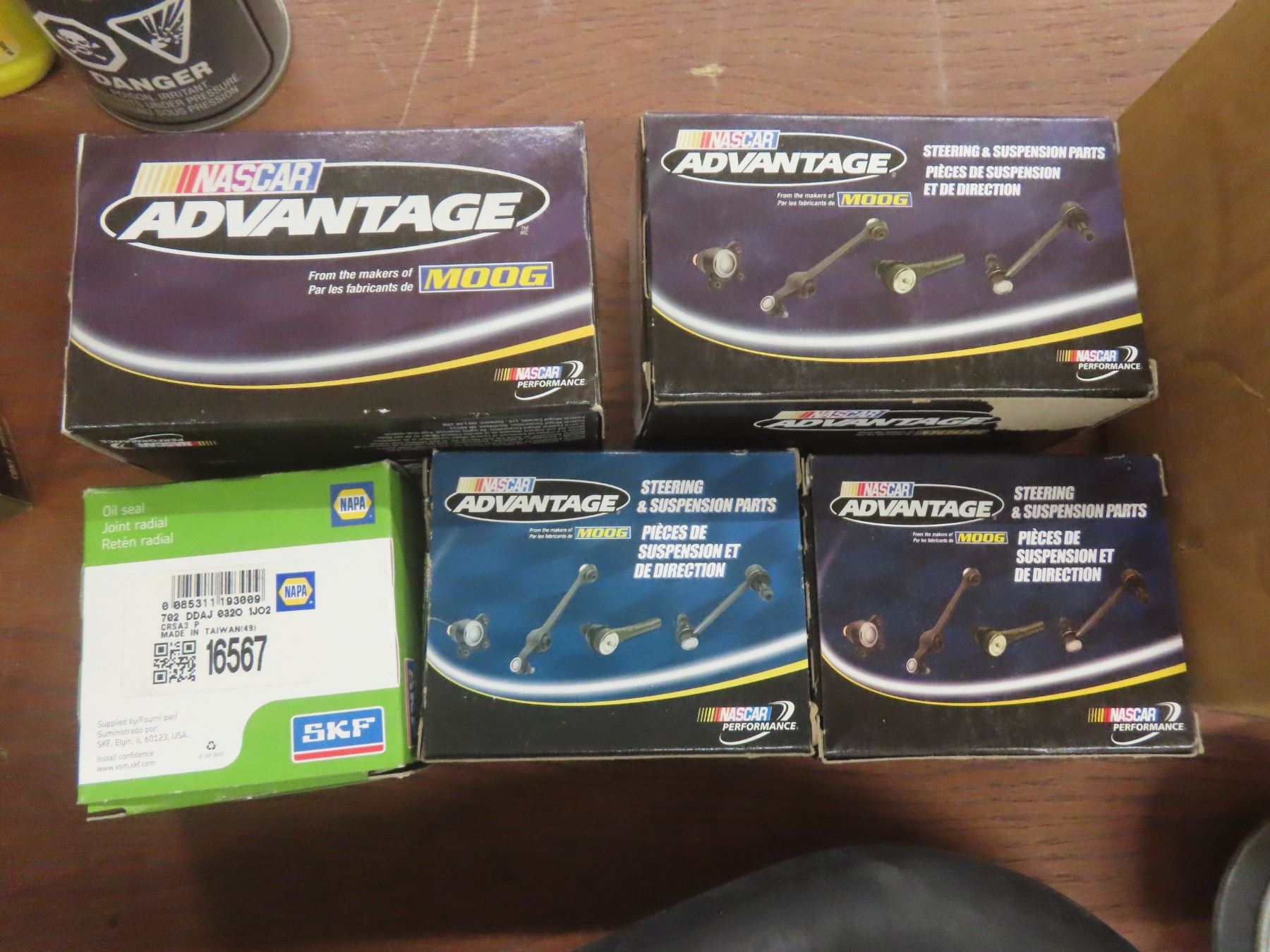 Auto Supplies Including New V-Belts, Steering and Suspension Parts, Fram Oil Filters, Rad Hose, and