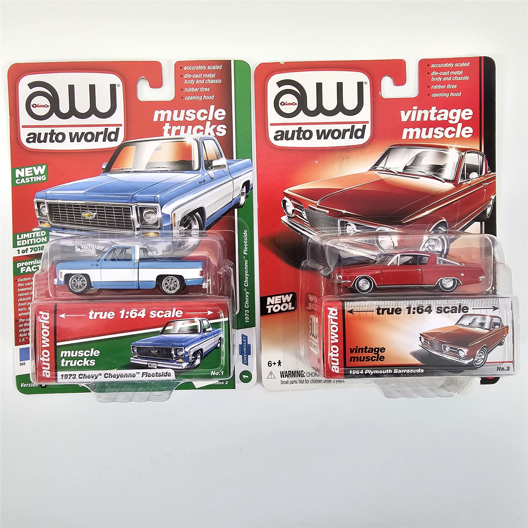 Auto World Muscle Pair including, 1973 Chevy Cheyenne Fleetside and 1964 Plymouth Barracuda
