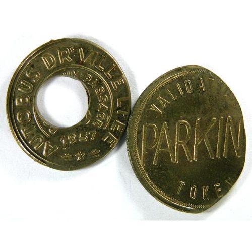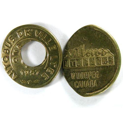 Autobus DR’Ville with Eliptical Clip and No Centre Plug and Winnipeg Parking Token with 20% eliptical clip. Two error tokens