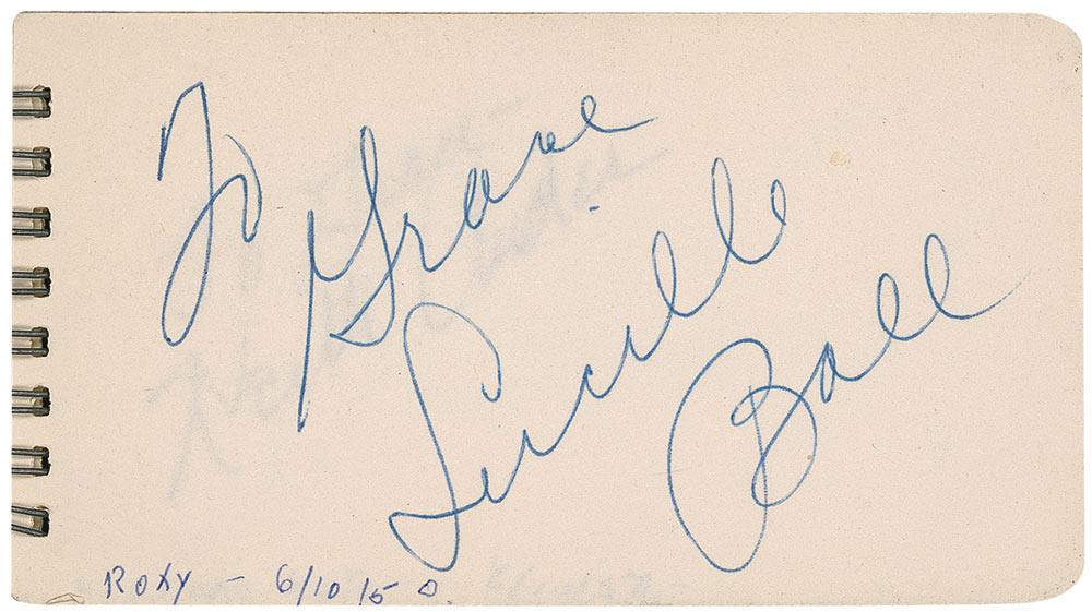 Four vintage notebooks, ranging in size from 5 x 2.5 up to 4.5 x 6, including three spiral bound, signed inside in ink and pencil by 159 actors and actresses, most single page and back-to-back, with almost all inscribed to Grace. Signers include: Lucille Ball, Claude Rains, Barry Nelson, Natalie Schafer, Ernest Truex, Louella Parsons, Burgess Meredith, Imogene Coca, Dennis Day, Victor Borge, and Robert Scott. In fine overall condition. RRAuction COA.