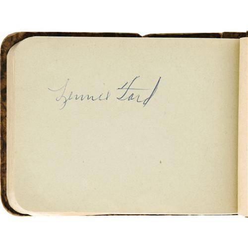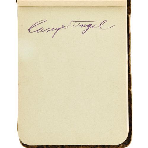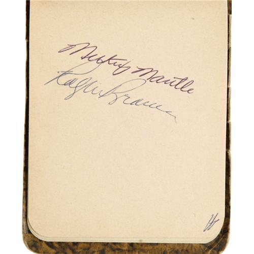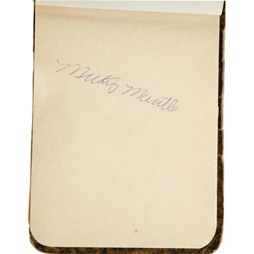 <B>Early 1950's Autograph Book with Two Rookie Mantles, Len Ford.</B></I> In truth, there are actually three Mickey Mantle autographs, signed in bold vintage ink in his highly coveted rookie style. Unfortunately, one of those signatures has been traced by the overzealous autograph collector, leaving just two Mantles pristine and unmolested. But the appeal extends far beyond the young kid from Oklahoma, with the next most notable name the Football Hall of Famer Len Ford, whose death in 1972 at age forty-six makes his autograph particularly tough. Among the other autographs found within: Stengel, Mize, Newhouser, Bucky Harris, Billy Martin, Whitey Ford, Branca and more. Terrific breakdown value here, though quite appealing as a complete volume. <I>LOA from PSA/DNA.</B></I>
