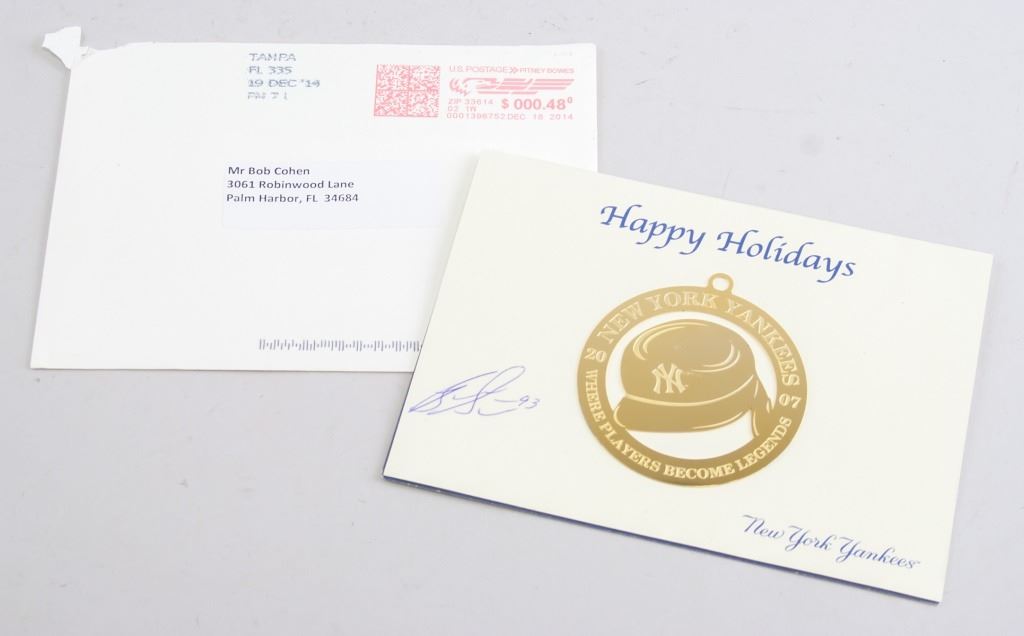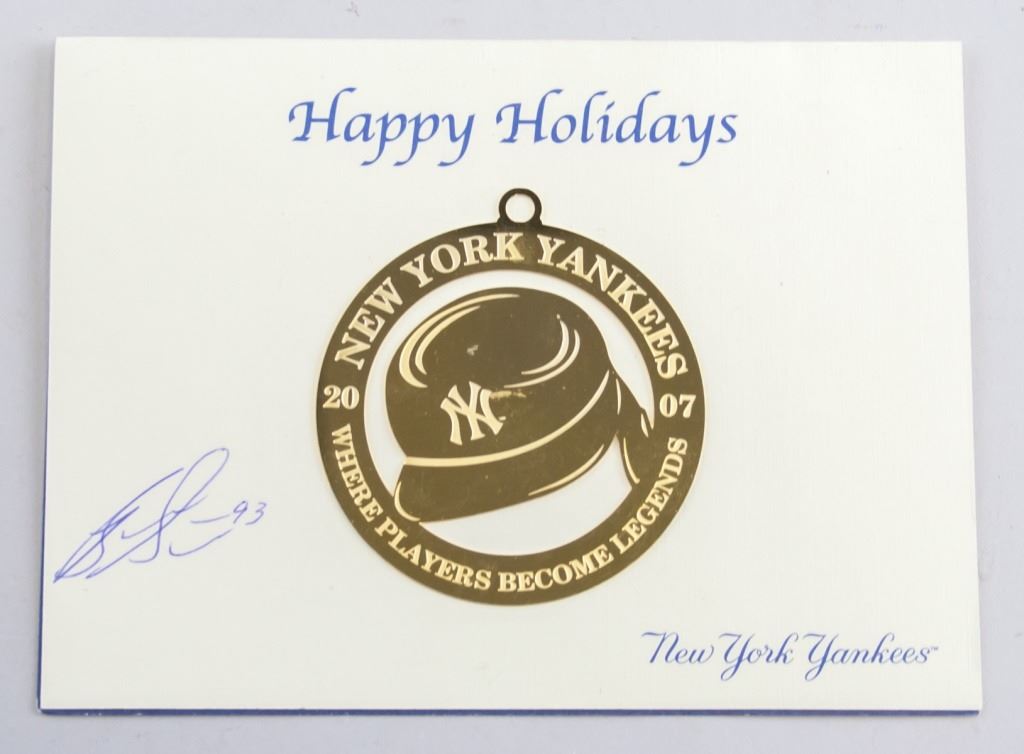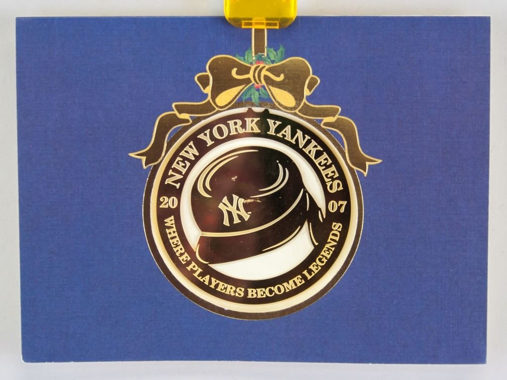 2007 New York Yankees Happy Holiday gilt metal card with players autograph from Bob Cohan. 12 x 16 cm (4.3 x 6.3 inch)