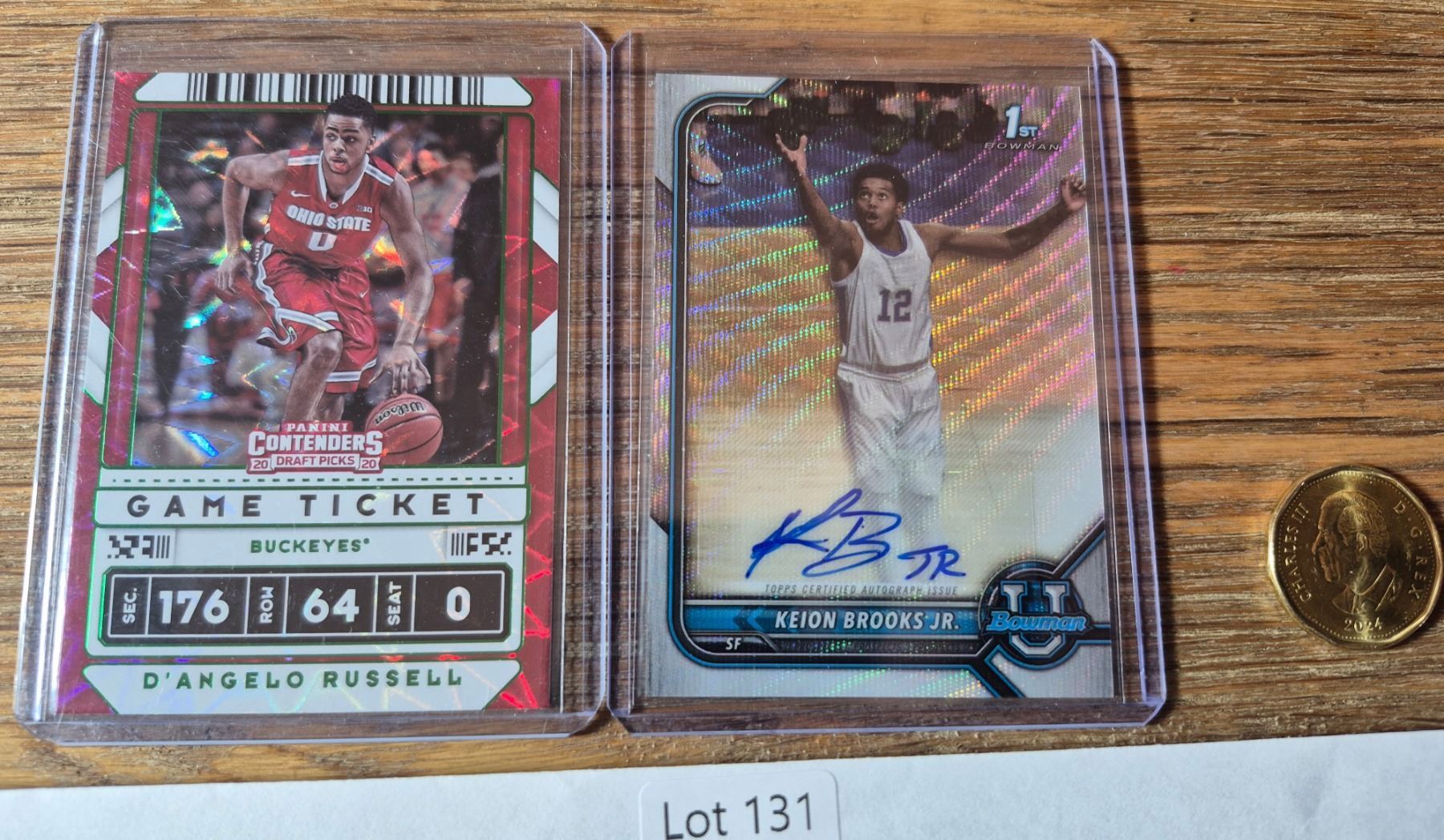 Keion Brooks Jr. Chrome Prospect Auto #015/199; D’Angelo Russell Contenders Red Refractor.