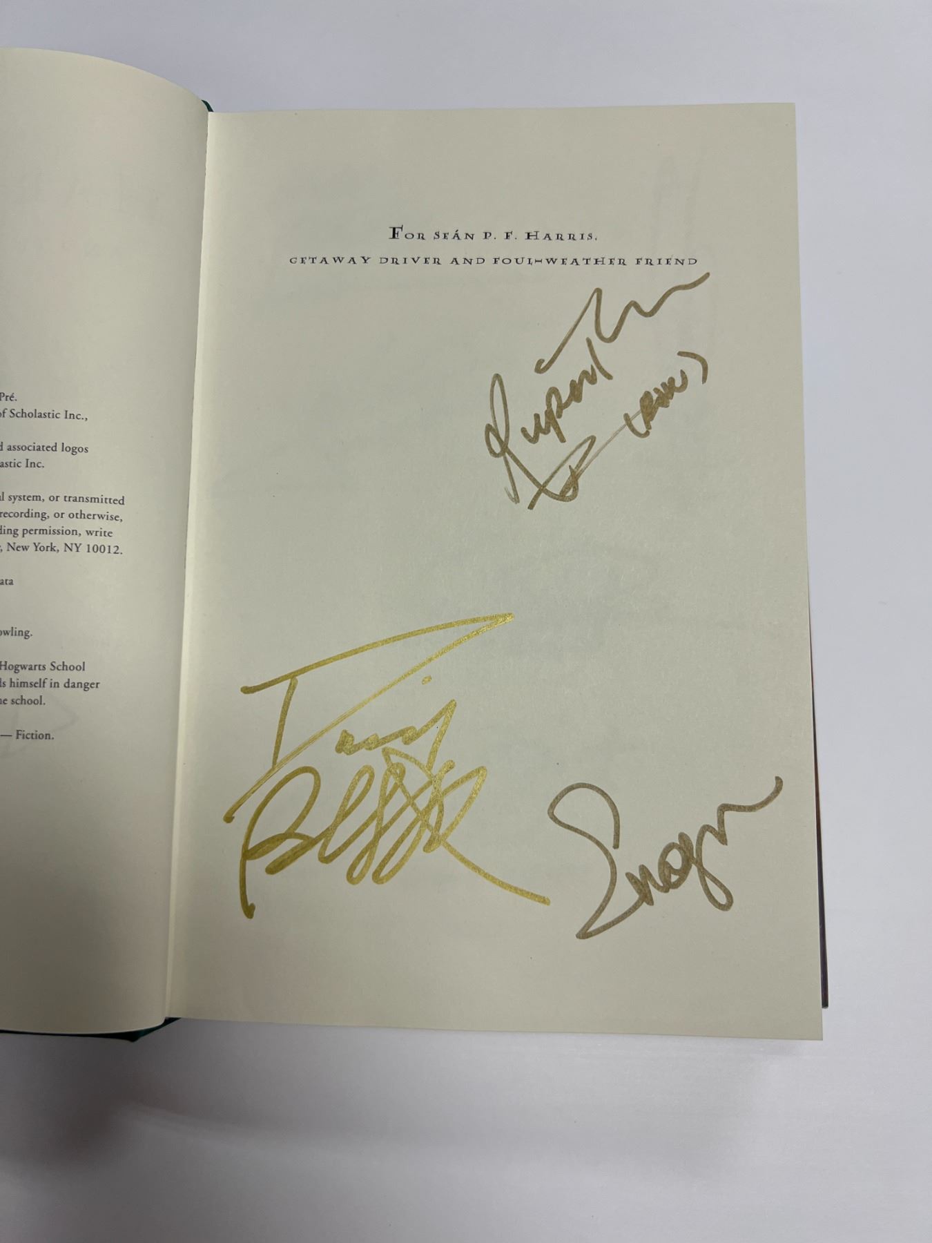 Autograph By: Daniel Radcliffe, Rupert Grint, Emma Watson, JK Rowling, Bonnie Wright, Alan Rickman, James Phelps, Oliver Phelps, Matthew Lewis, Maggie Smith, Warwick Davis, Tom Felton, Robbie Coltrane, Richard Griffith