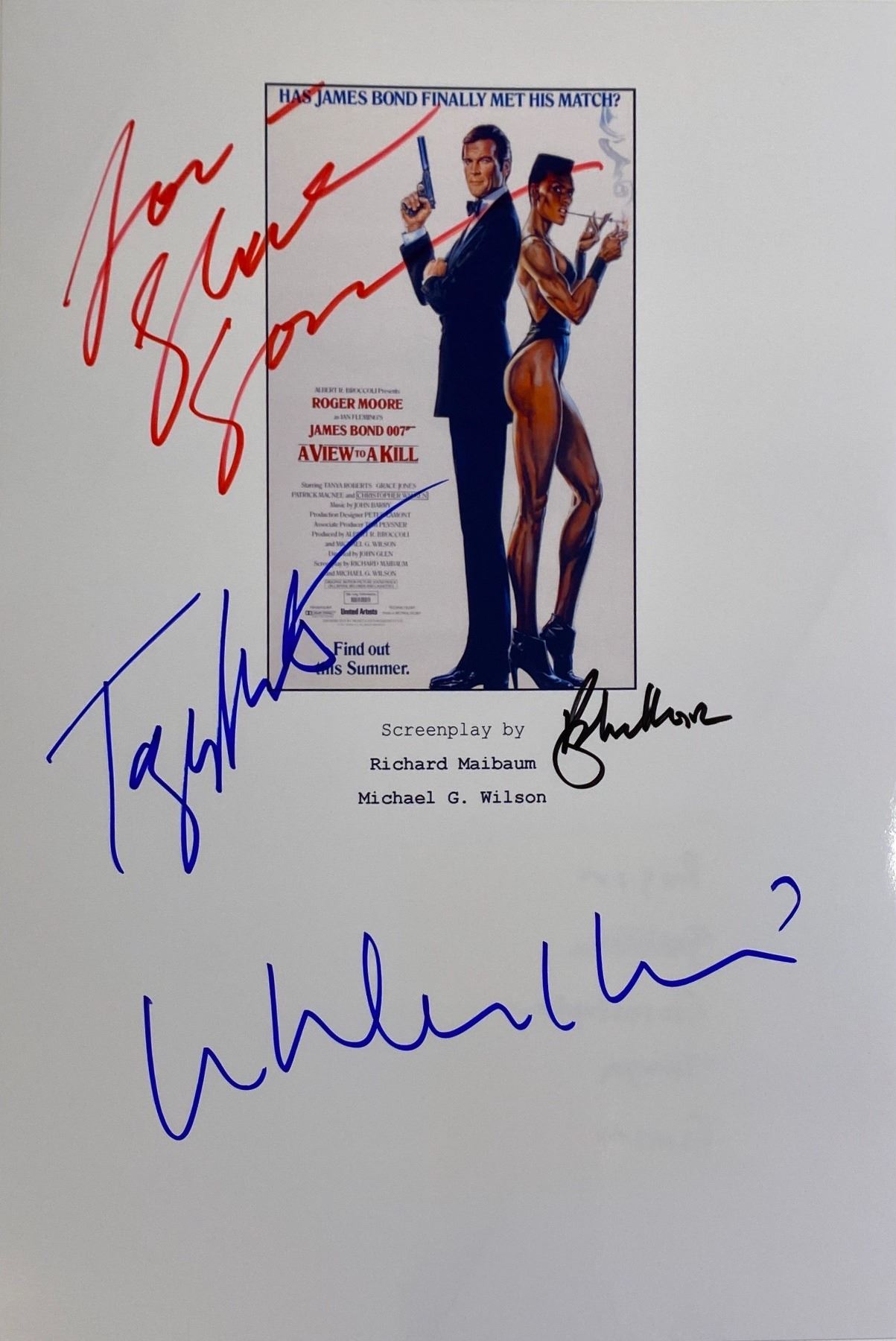 Autograph By: Roger Moore, Christopher Walken, Tanya Roberts, Grace Jones