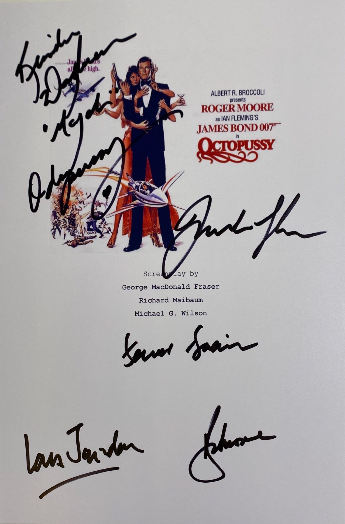 Autograph By: Roger Moore, Maud Adams, Louis Jourdan, John Glen, Kristina WaybornRoger Moore, Maud Adams, Louis Jourdan, John Glen, Kristina Wayborn