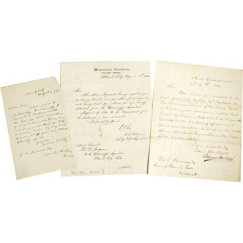 <B>Autograph Letters Signed by Horace Greeley, Gideon Wells and Captain Samuel P. Lee,</B></I> all addressed to George H. Beaman, various locations. George Beaman, a rising young journalist from Vermont, landed in the U.S. Navy during the Civil War and did not retire from uniform until 1899. Here are three letters addressed to Beaman by famous men of his day. The antebellum letter regards journalism whereas the subsequent letters are naval. The letters are as follows:<BR><B>Horace Greeley ALS,,</B></I> one page, 5" x 8", New York, August 2, 1858. It reads:"<I>I have yours of Saturday. Personally, I do not interfere with the foreign correspondence of our paper, Mr. Dana having exclusive control of it. If, however, I can say any word that can help you, I shall gladly do so.</B></I>" A supportive letter from the most powerful newspaperman of the day. <BR><B>Gideon Wells LS,</B></I> one page, 8" x 10", Washington, D.C., May 7, 1862. Secretarially penned letter allowing Beaman to be examined for qualifications as Assistant Paymaster. Bold signature of Lincoln's Secretary of the Navy.<BR><B>Samuel Phillips Lee Letter Signed,</B></I> "<I>S. P. Lee</B></I>", two pages on Mississippi Squadron letterhead, Mound City, Illinois, August 12, 1865. Beaman is released from the Squadron at war's end. The signatory, Samuel Phillips Lee was an acting rear admiral and Commander of the Mississippi Squadron. Although, a Virginian and kinsman to Robert Lee, he stayed true to the Union during the war. All letters enjoy light, even toning. A few minor stains, expected folds Fine condition.<BR><BR><b>Shipping:</b> Flat Material, Small (<a target="_blank" href="http://www.heritageauctions.com/common/shipping.php">view shipping information</a>)