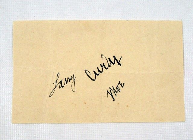 Autograph Of Larry Fine, Moe Howard and Curly Howard Extremely rare autographs of all three of the truly classic Three Stooges: Larry Fine, Moe Howard, and Curly Howard. All have written their first names: Larry, Moe and Curly. A true collectable for Stooges fans! Comes with an Invoice of Authenticity from Profiles In History.