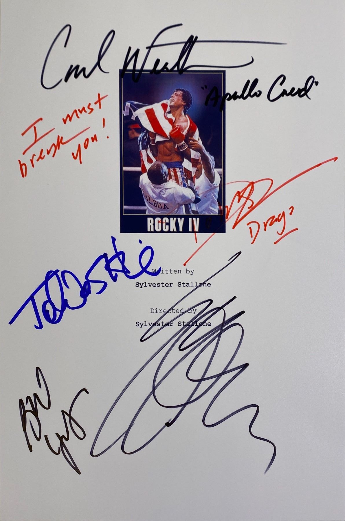 Autograph By: Sylvester Stallone, Talia Shire, Carl Weathers, Burt Young, Dolph Lundgren
