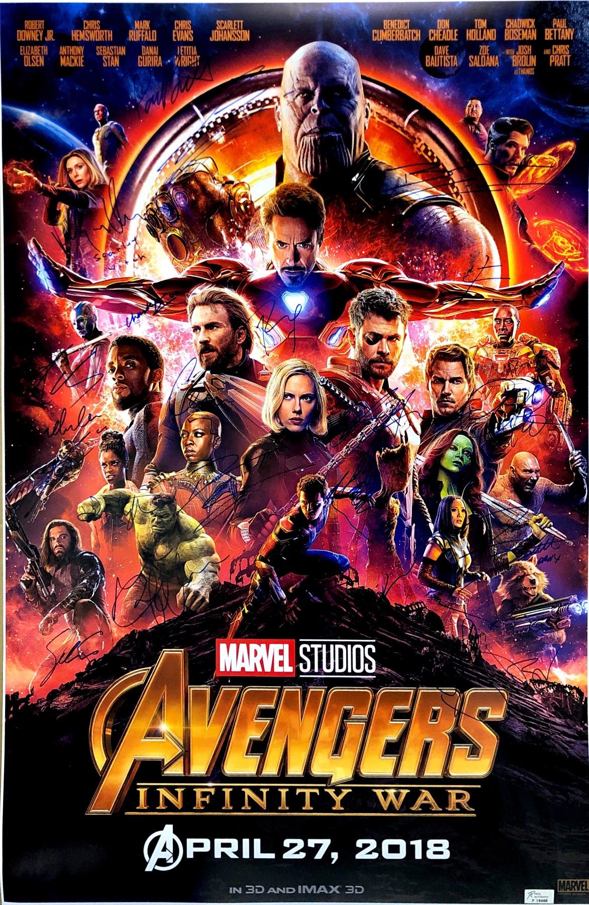 Autograph Includes: Paul Bettany, Elizabeth Olsen, Josh Brolin, Benedict Wong, Benedict Cumberbatch, Robert Downey Jr, Karen Gillan, Chris Evans, Chadwick Boseman, Chris Hemswoeth, Anthony Mackie, Chris Pratt, Dave Bautista, Pom Klementieff, Bradley Cooper, Vin Diesel, Tom Holland, carlett Johansson, Danai Gurira, Mark Ruffalo, Letita Wright, Sebastian Stan, Don Cheadle