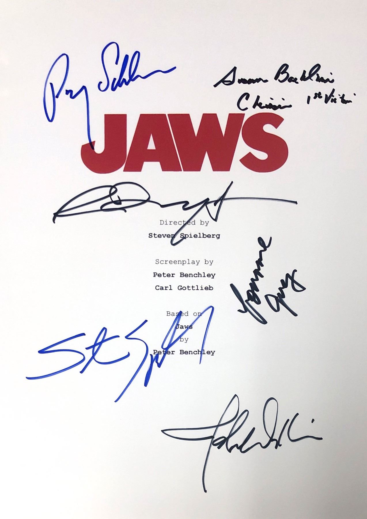 Autograph Includes: Lorraine Gary, Roy Scheider, Susan Backlinie, Richard Dreyfuss, Steven Spielberg, John Williams