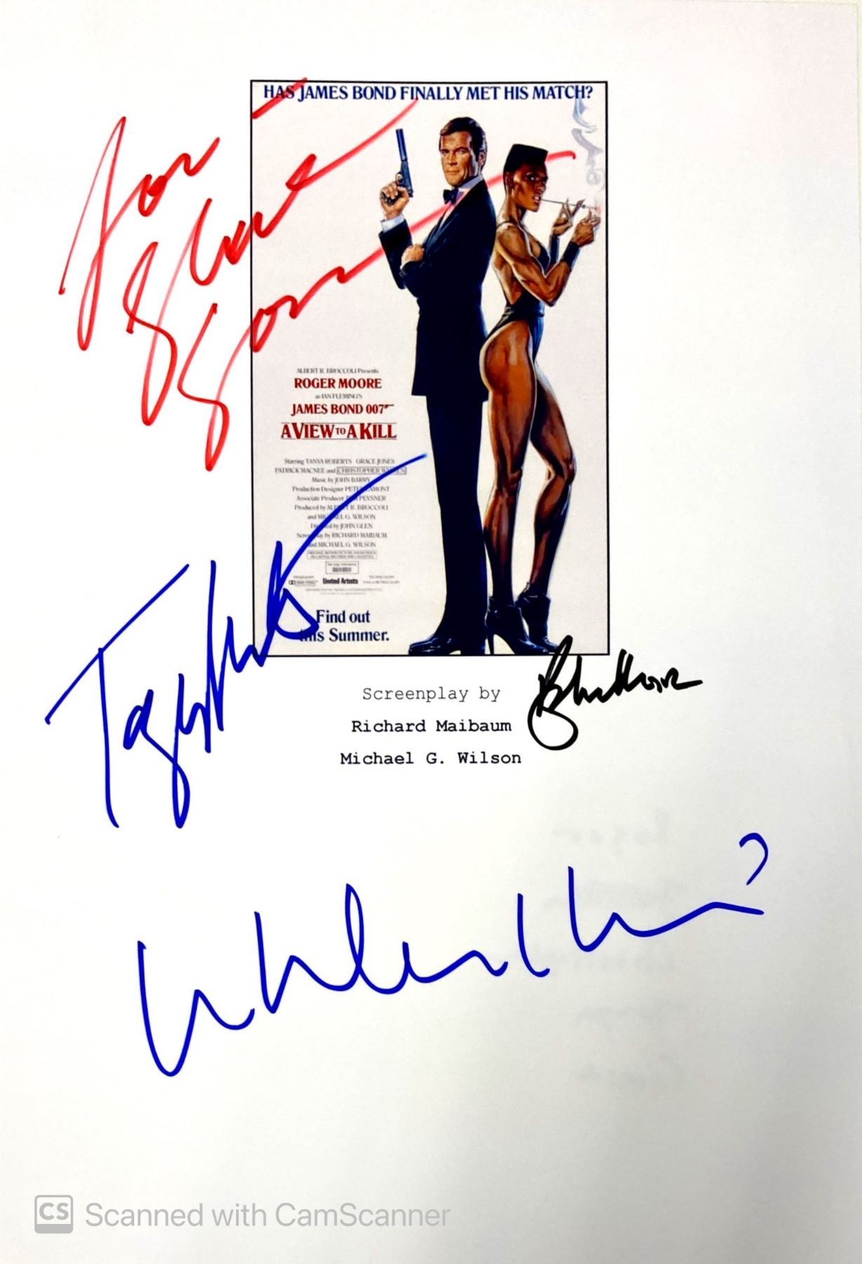 Autograph: Roger Moore, Christopher Walken, Tanya Roberts, Grace Jones