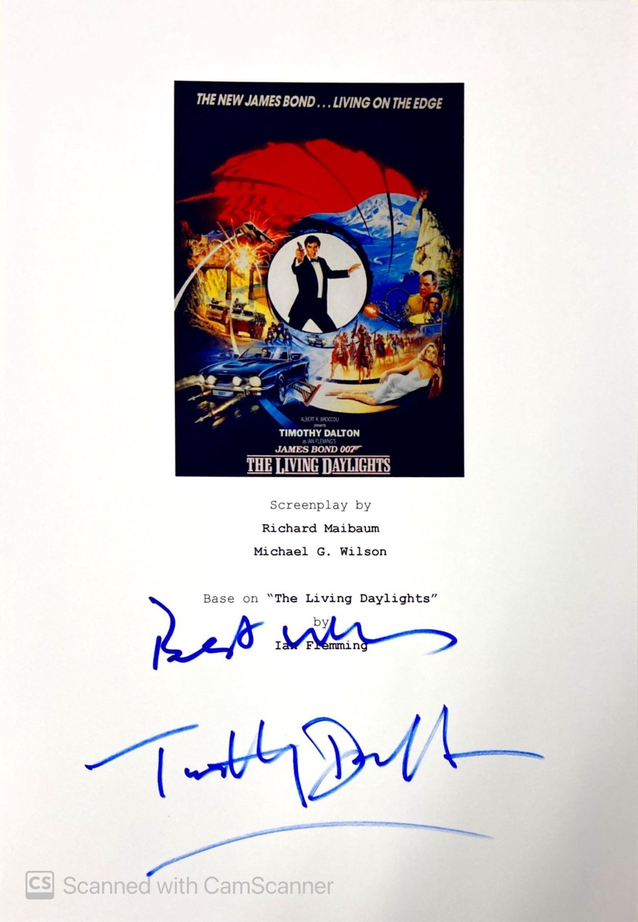 Autograph Signed Script Cover James Bond The Living Daylights