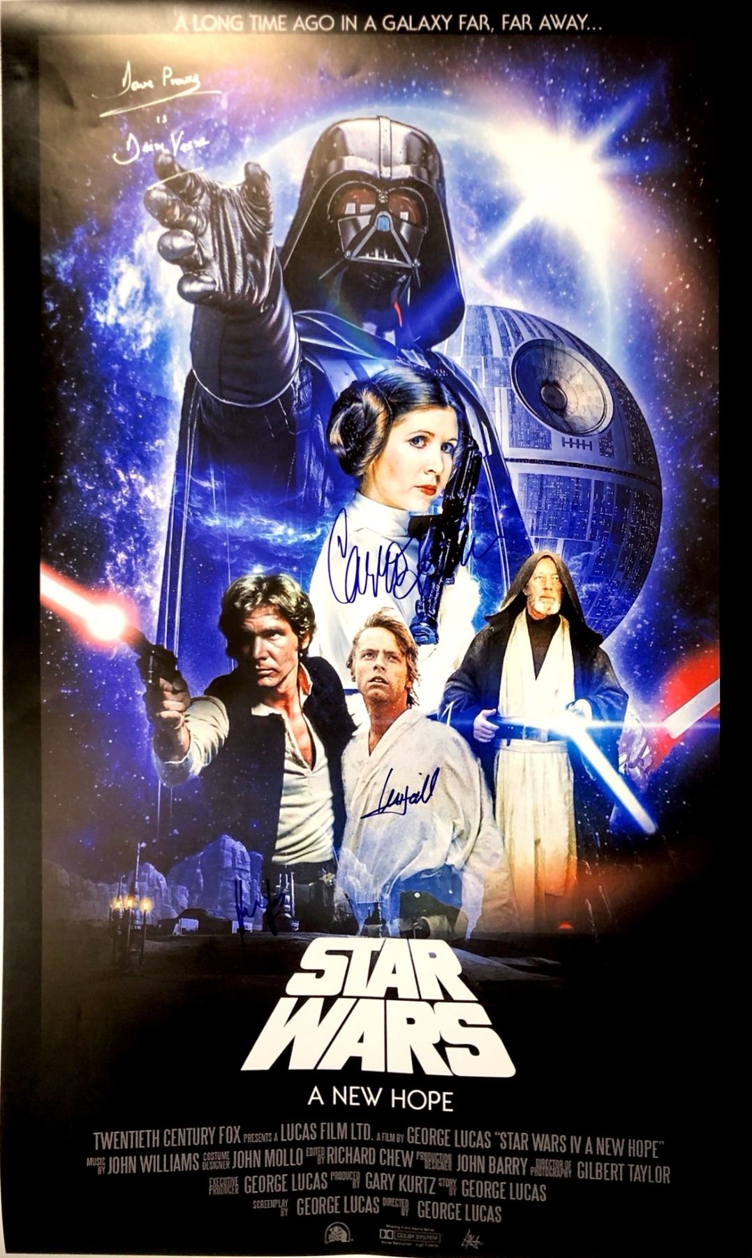 Autograph Includes:Carrie Fisher, Mark Hamill, Harrison Ford, Dave Prowse