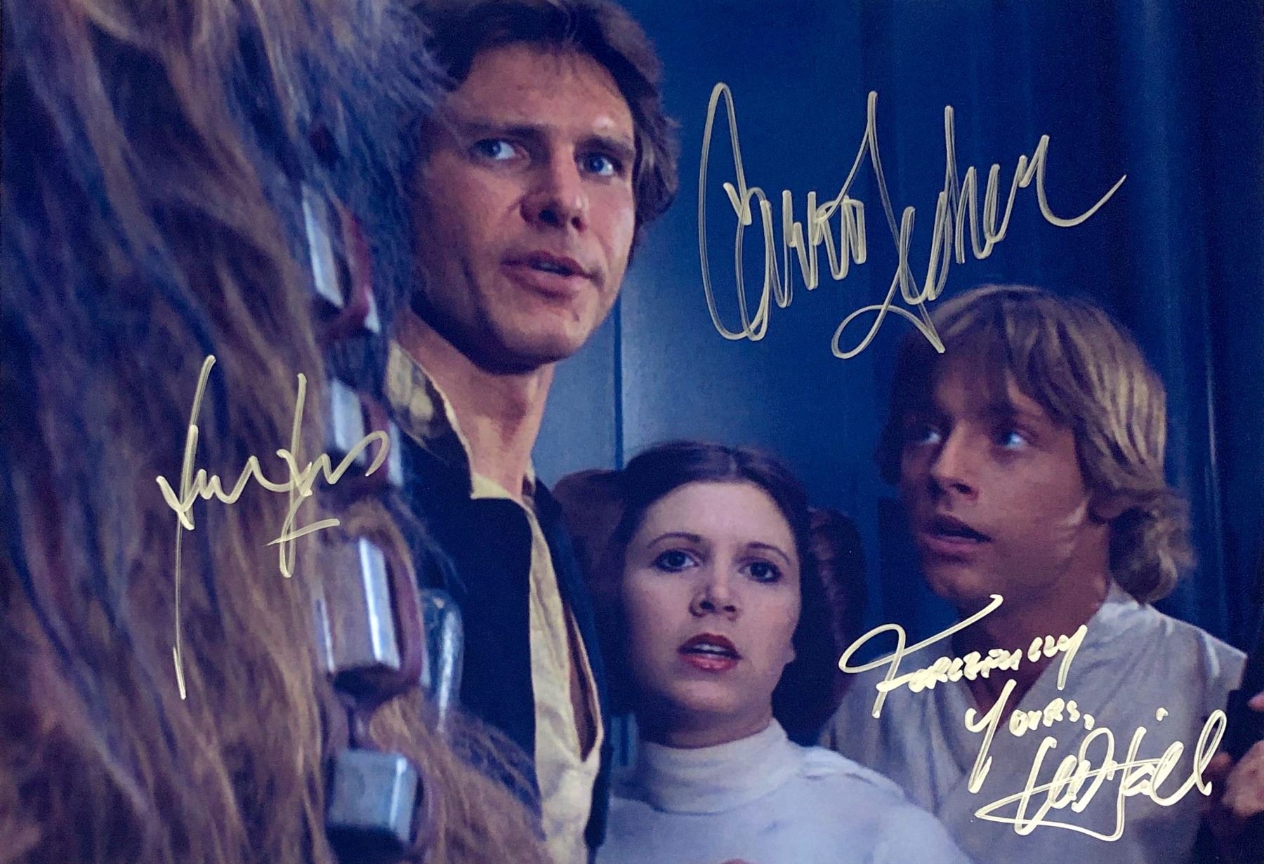 Autograph Includes: Harrison Ford, Mark Hamill, Carrie Fisher