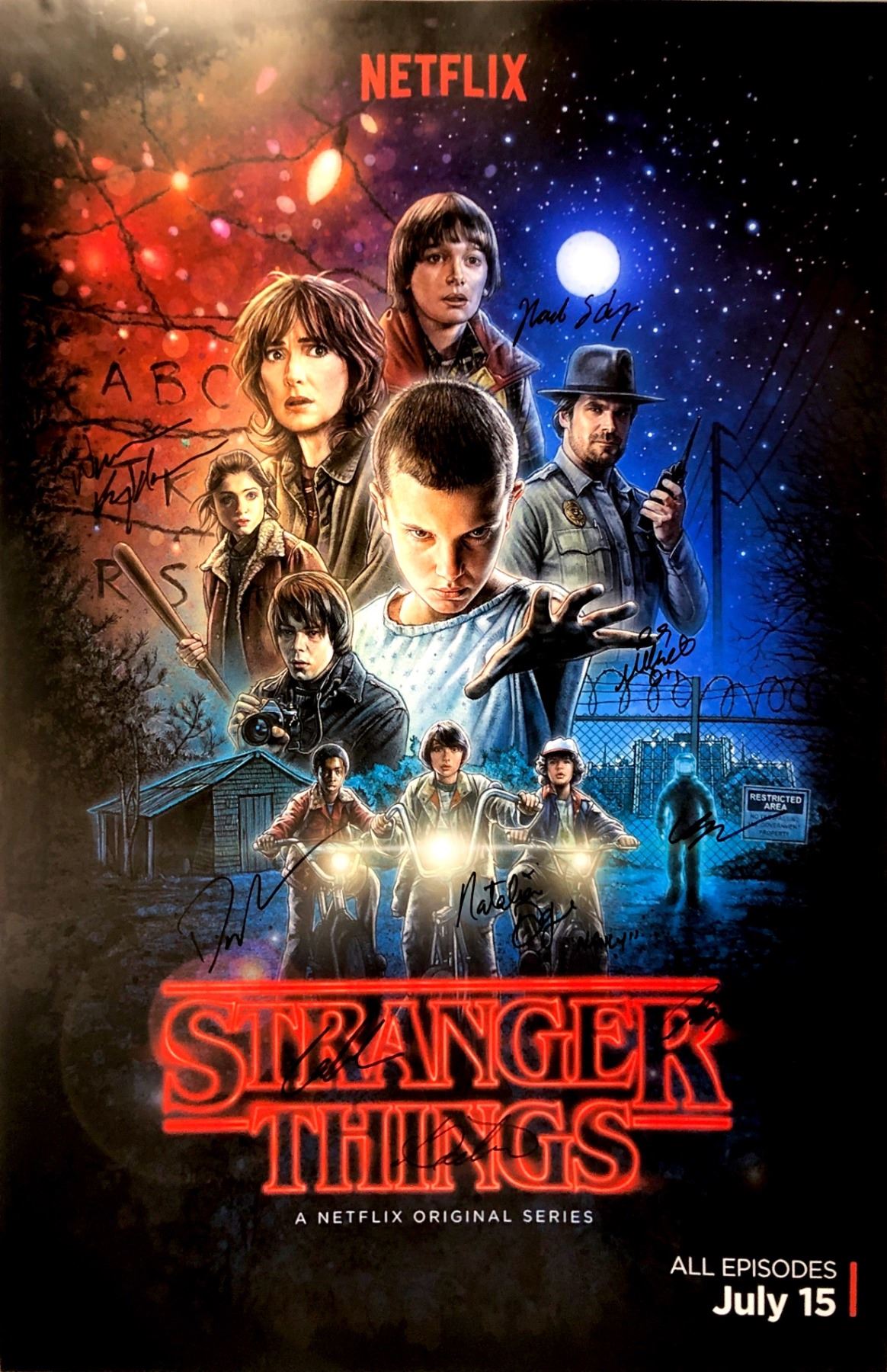 Autograph Includes: Winona Ryder, David Harbour, Natalia Dyer, Caleb McLaughlin, Millie Bobby Brown, Finn Wolfhard, Charlie Heaton, Noah Schnapp, Gaten Matarazzo