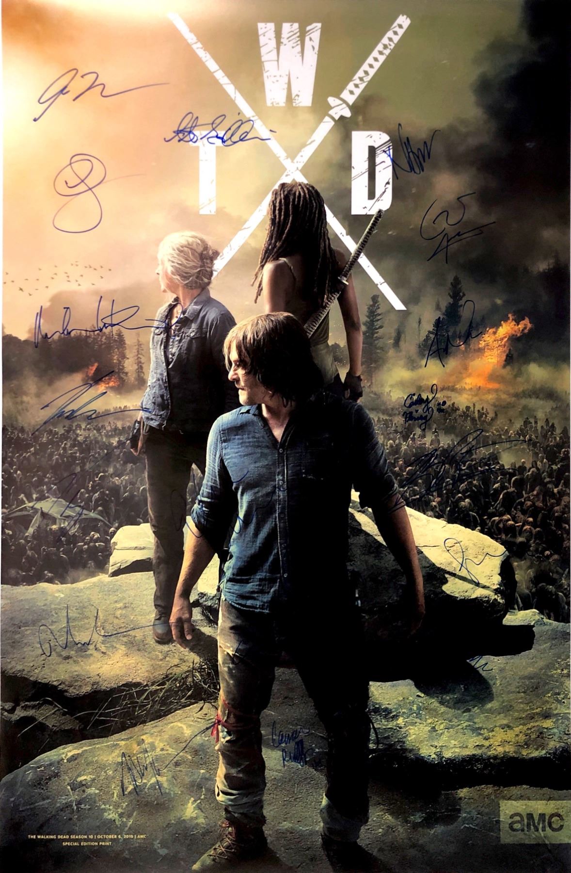 Autograph Includes: Norman Reedus, Danai Gurira, Melissa McBride, Christian Serratos, Josh McDermitt, Seth Gilliam, Ross Marquand, Khary Payton, Samantha Morton, Jeffrey Dean Morgan, Lauren Cohan, Callan McAuliffe, Avi Nash, Eleanor Matsuura, Cooper Andrews, Nadia Hilker, Cailey Fleming, Cassady McClincy, Lauren Ridloff