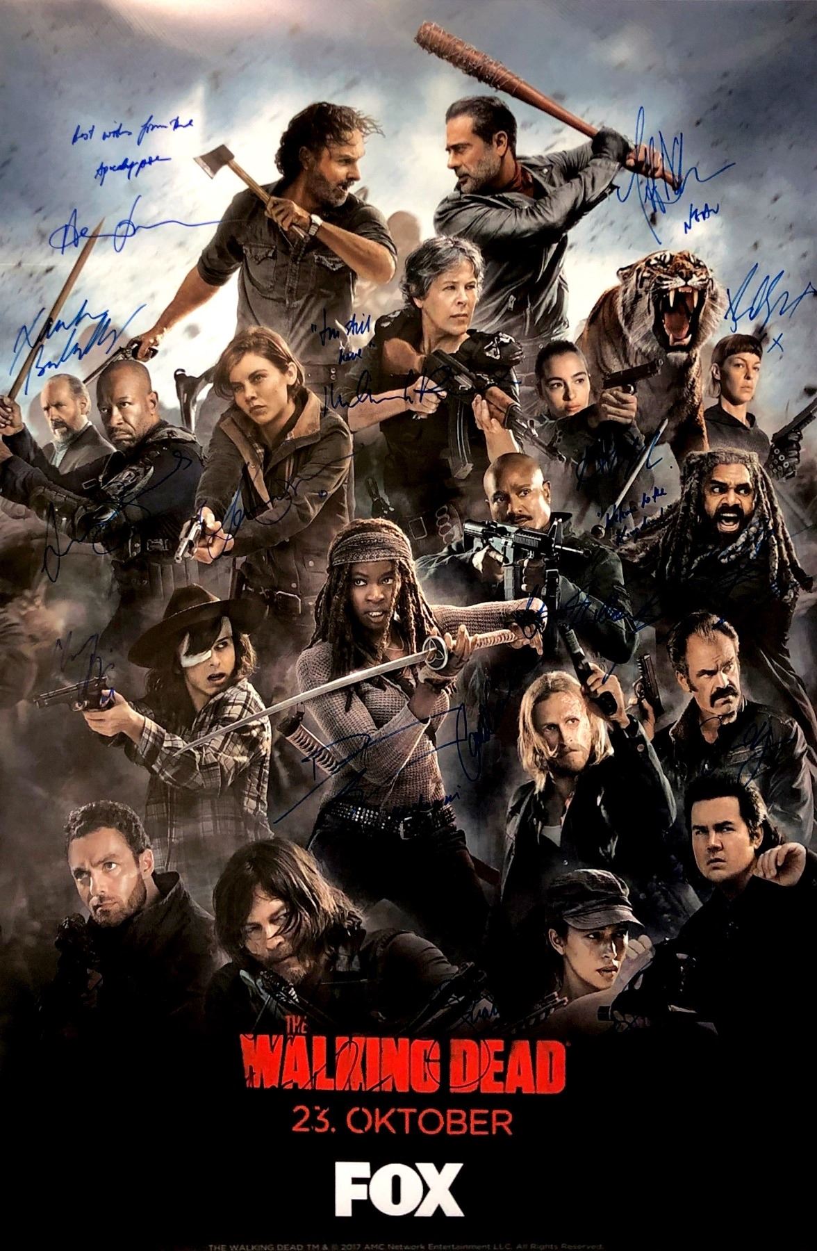 Autograph Includes: Andrwe Lincoln, Norman Reedus, Lauren Cohan, Chandler Riggs, Danai Gurira, Melissa McBride, Lennie James, Alanna Masterson, Josh McDermitt, Christian Serratos, Seth Gilliam, Ross Marquand, Jeffrey Dean Morgan, Austin Amelio, Tom Payne, Xander Berkeley, Khary Payton, Steven Ogg, Katelyn Nacon, Pollyanna McIntosh