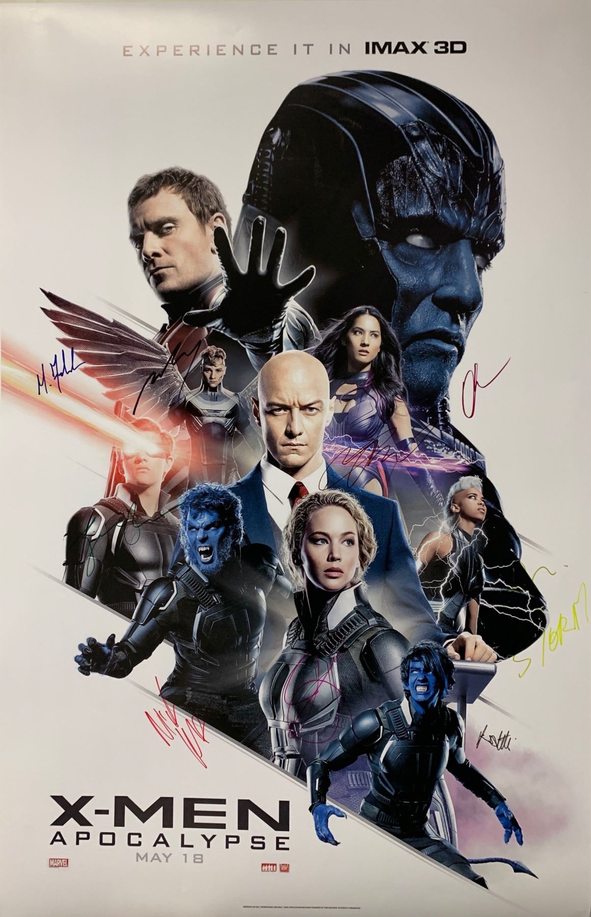Autograph Includes: James McAvoy, Michael Fassbender, Jennifer Lawrence, Nicholas Hoult, Olivia Munn, Alexandra Shipp, Tye Sheridan, Ben Hardy, Evan Peters, Kodi Smit-McPhee